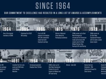For over 50 years, SCAT has developed, engineered, and manufactured the most comprehensive product line in the automotive aftermarket. SCAT has grown from a distributor of specialty Volkswagen parts into the premier manufacturer and distributor of high-performance aftermarket engine components for a wide range of American and foreign e